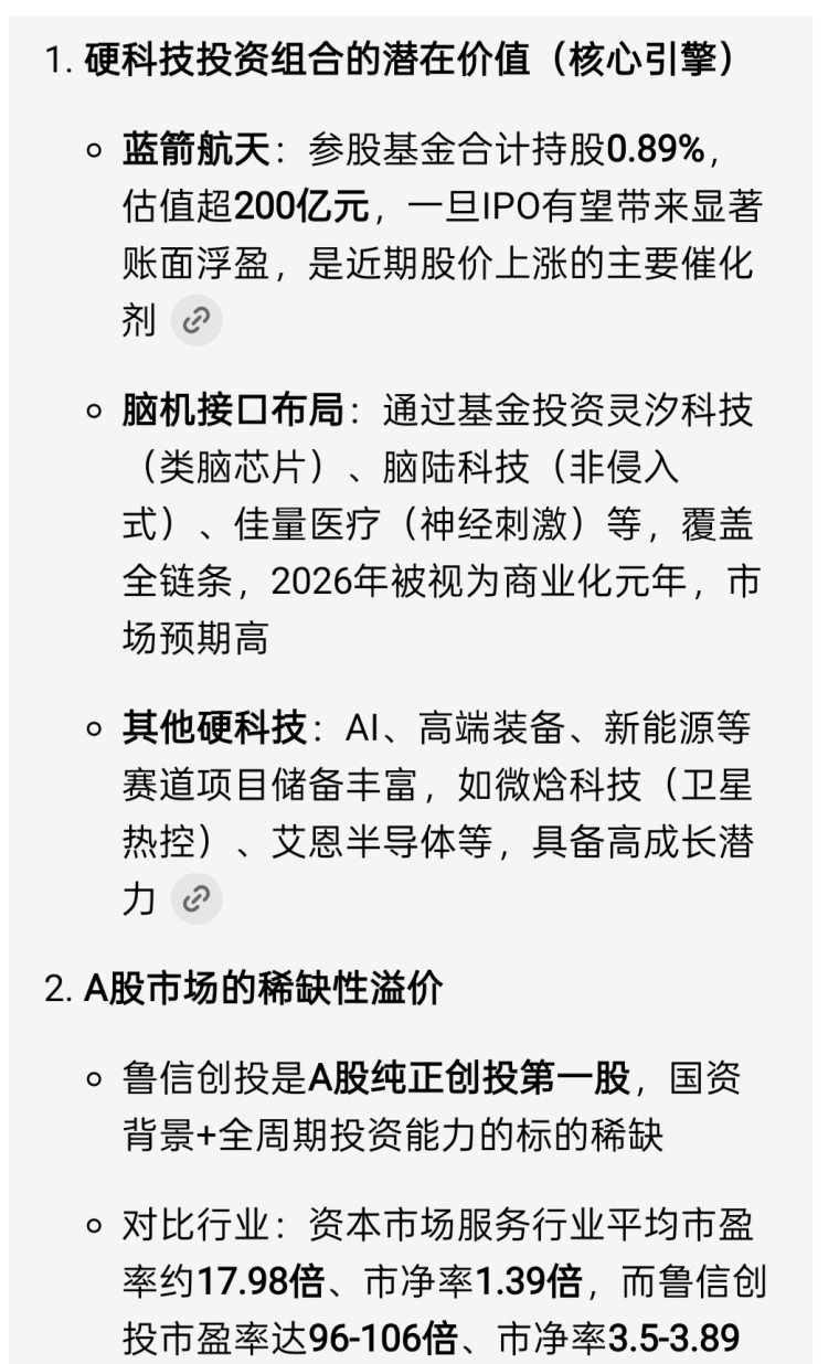 鲁信创投 商业航天 +脑机接口 两大热点集于一身 连扳做多最强标的确立, 技术上 强势尽显 向上大涨空间开启,携 蓝箭航天ipo大利好预期力挺 ,鲁信在 蓝箭航天的风口起飞 ,锁仓一股不卖 很快这波至少要连板冲40-50元