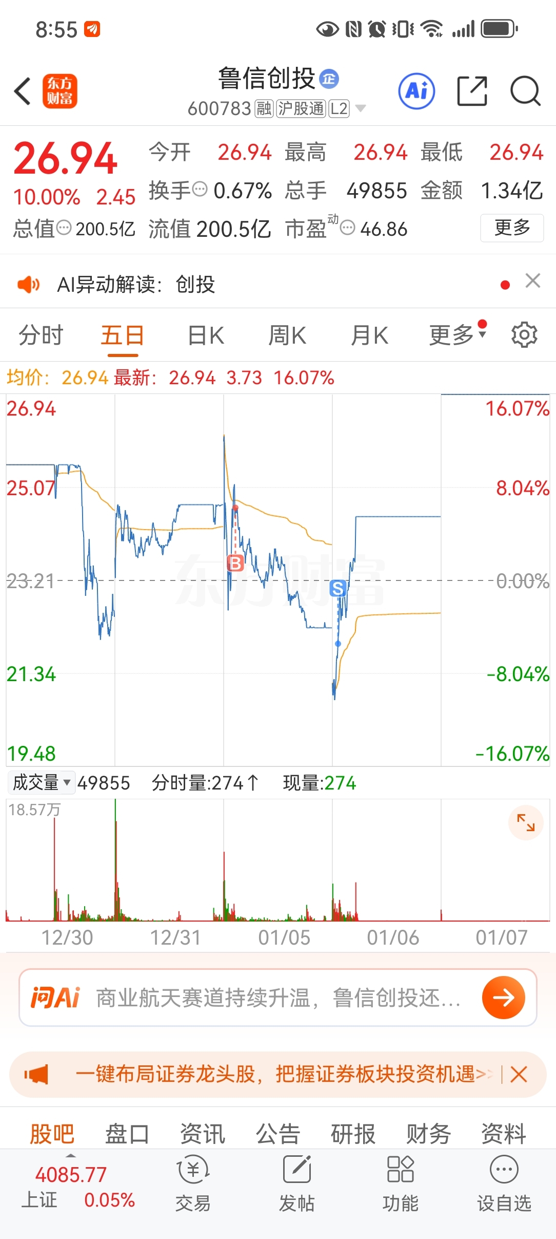$鲁信创投(SH600783)$ 王德发,昨天卖了还想做T接回来结果没给机会了