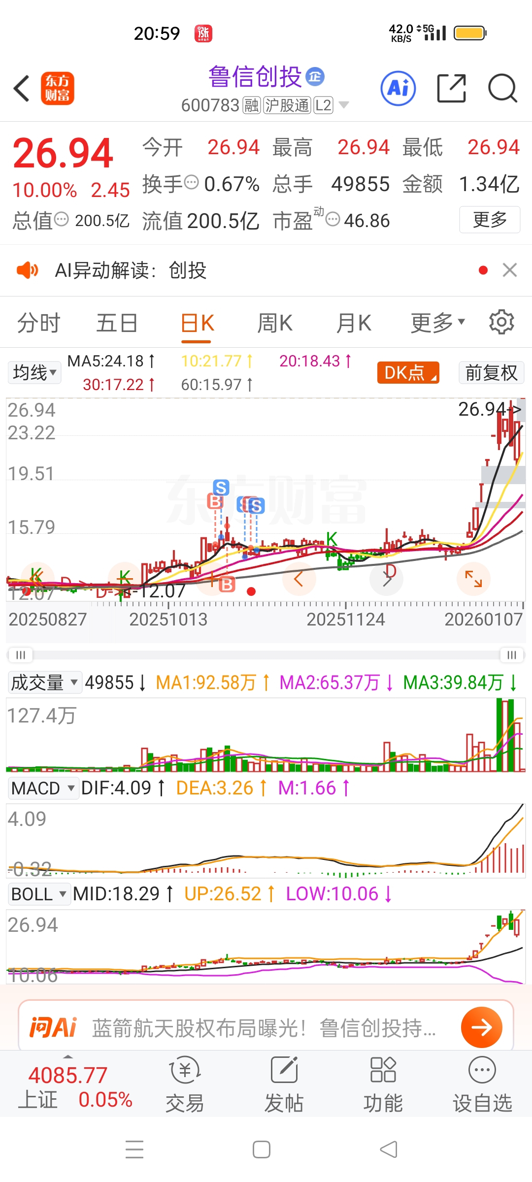 $鲁信创投(SH600783)$ 我只要卖飞机票都开始大牛股