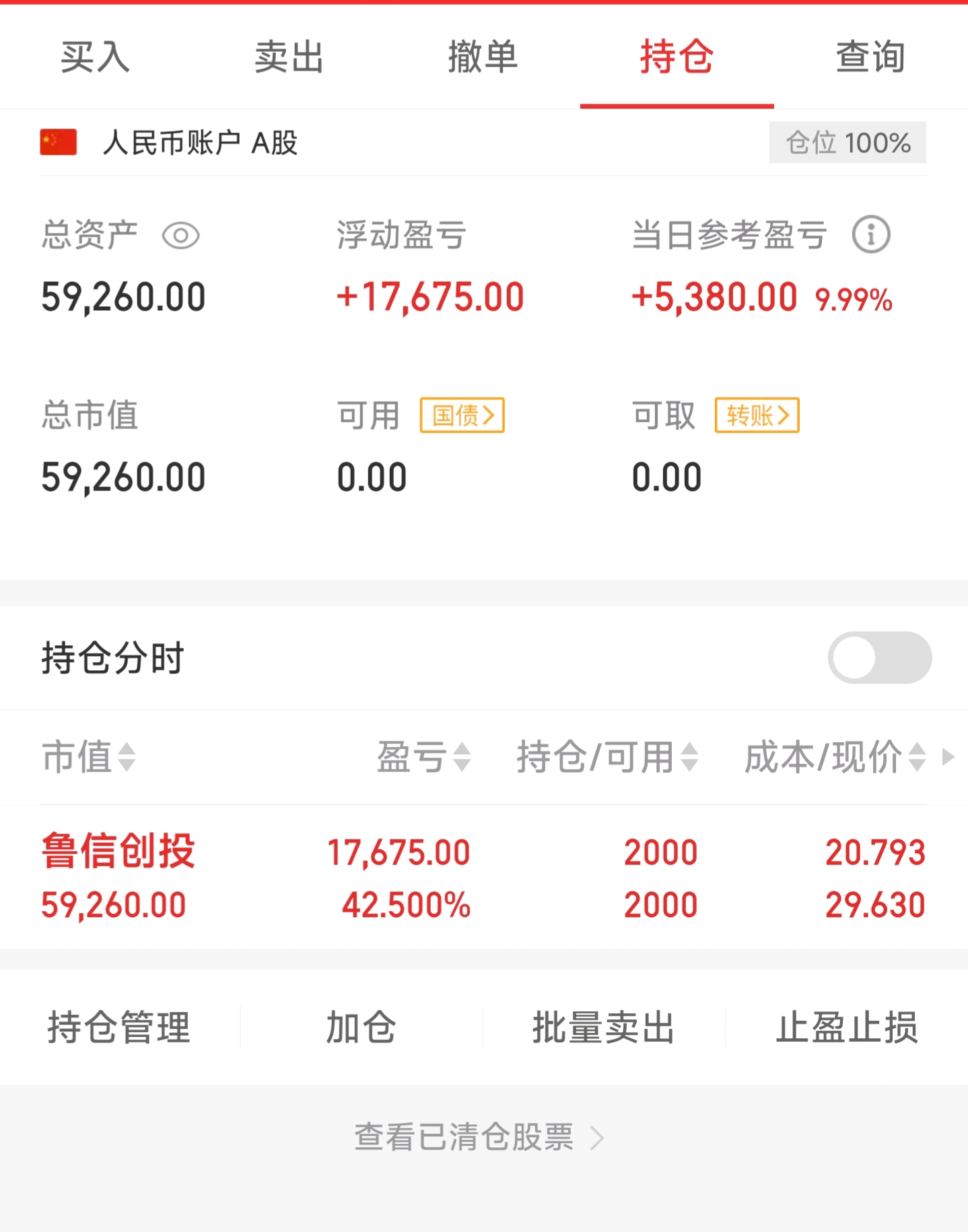 $鲁信创投(SH600783)$ 牛批三天赚40个,感谢