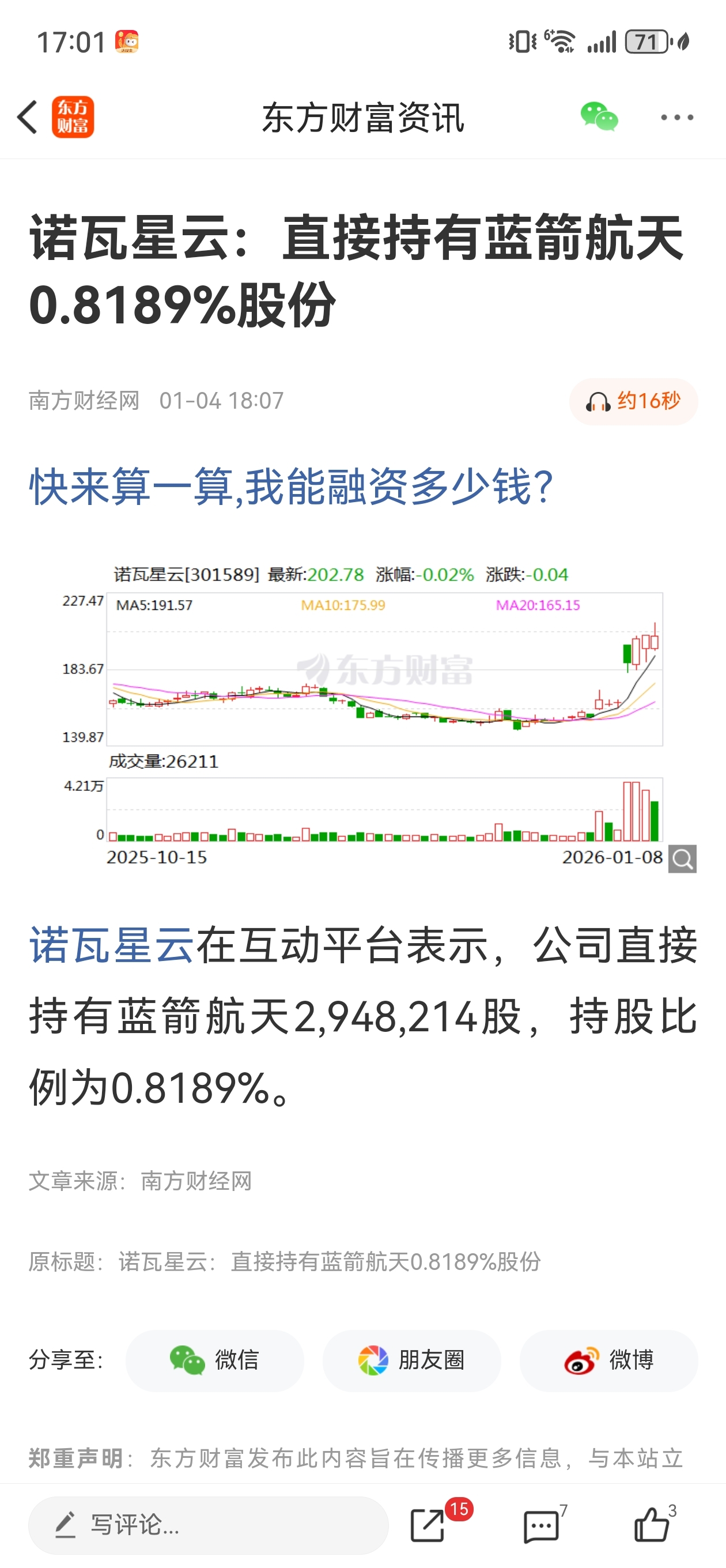 诺瓦星云同样参股蓝箭航天的,这几天也是放量拉升,随时起爆,跟上金风科技和鲁信创投