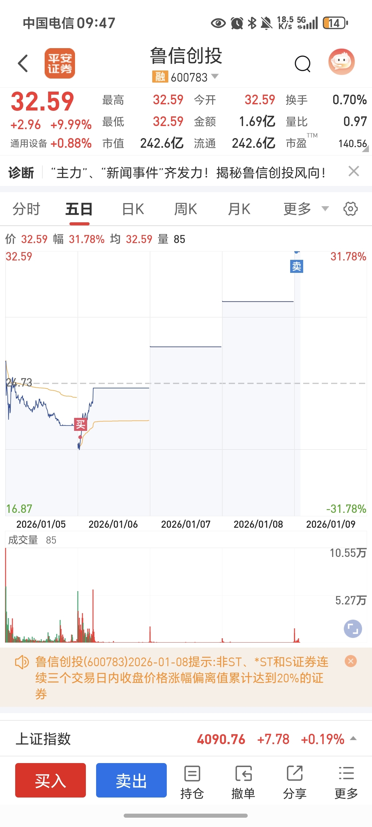 出了一点鲁信创投,进了天际股份,感谢群总。新年快乐,大吉大利