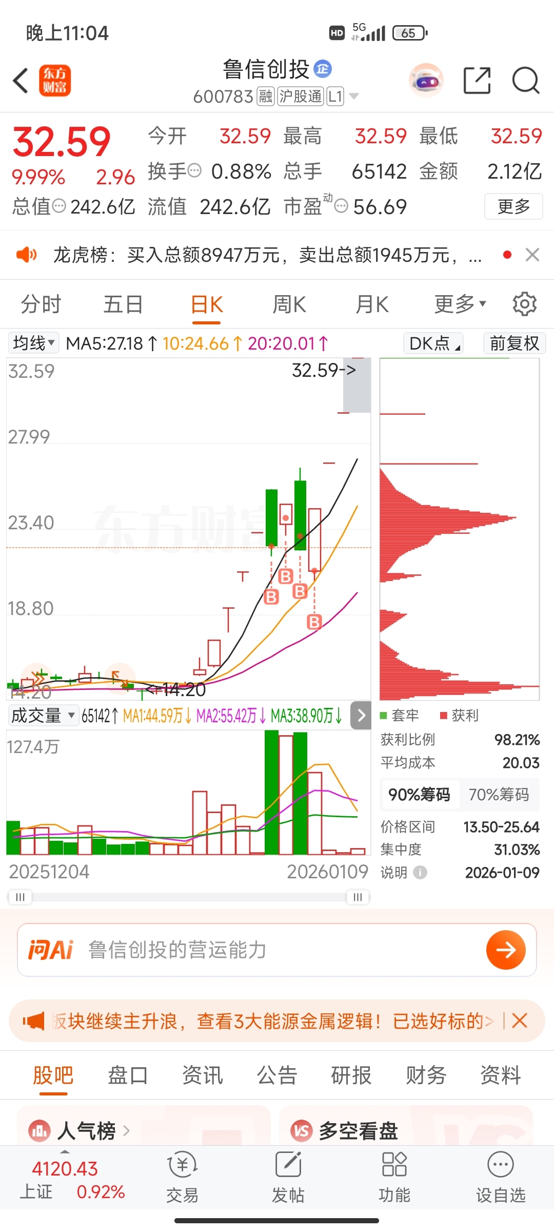 $鲁信创投(SH600783)$ 还有谁与我同步的