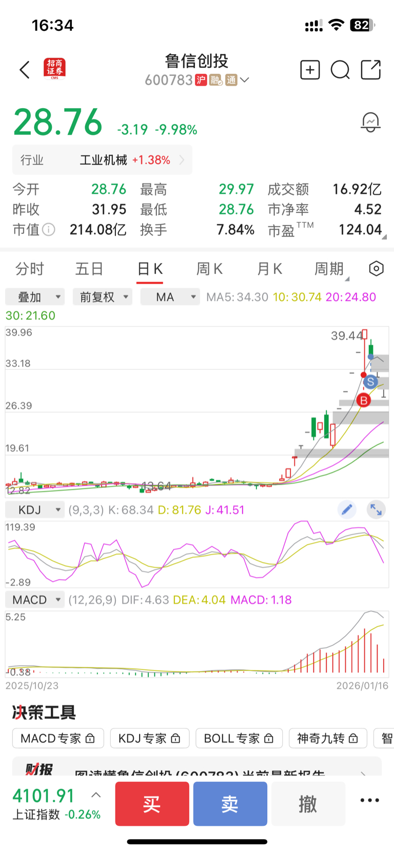 $鲁信创投(SH600783)$ 极限火中取粟,赚两个点跑路!
