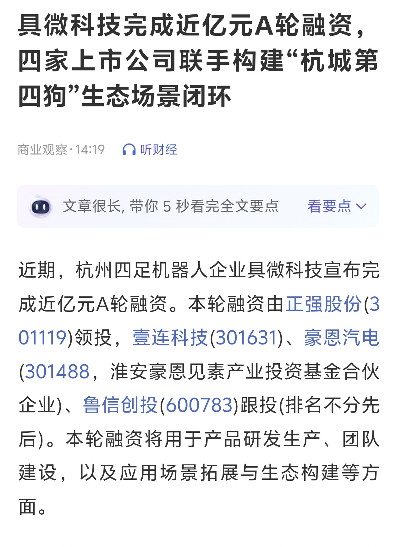 $鲁信创投(SH600783)$ 这算利好吗?鲁信创投投资了四足机器人公司。