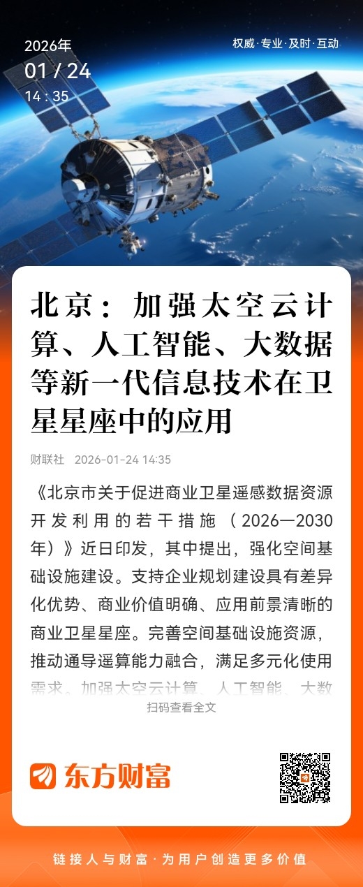北京:加强太空云计算、人工智能、大数据等新一代信息技术在卫星星座中的应