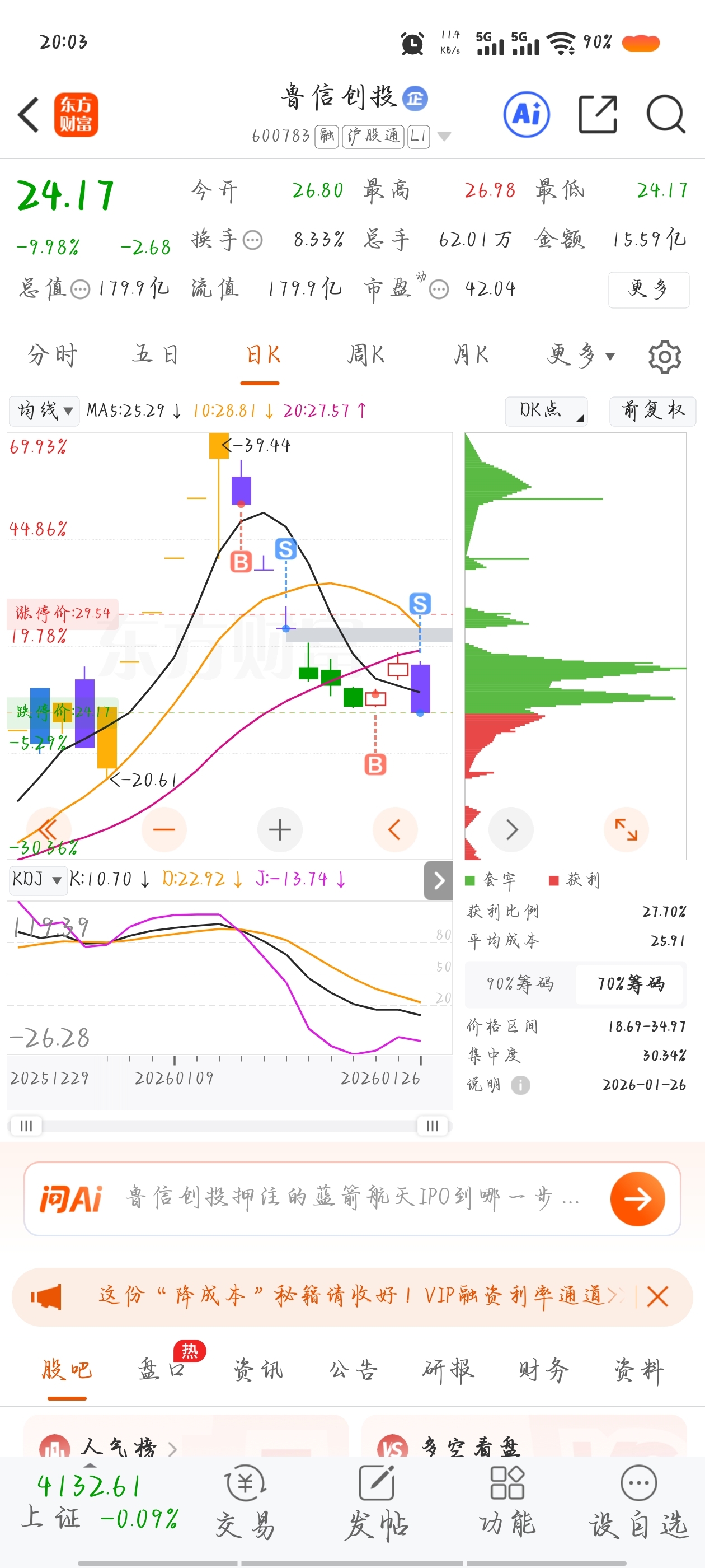$鲁信创投(SH600783)$ 进来就吃四个地板
