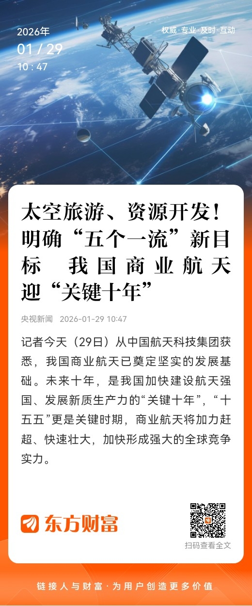 太空旅游、资源开发!明确“五个一流”新目标 我国商业航天迎“关键十年”