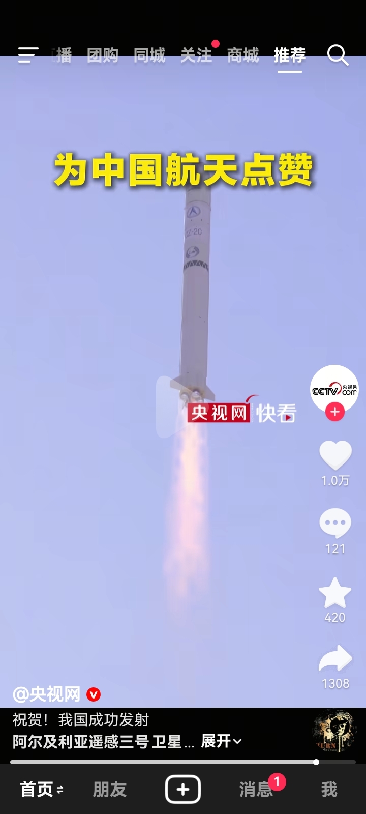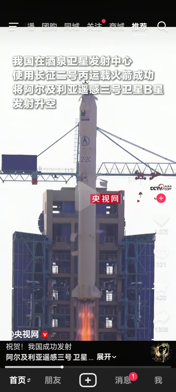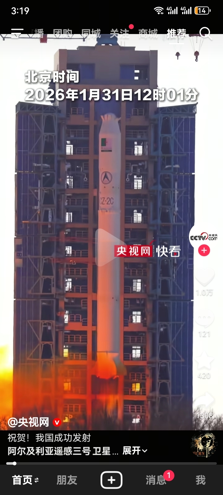 1月31日12点多,长征二号丙运载火箭发射成功