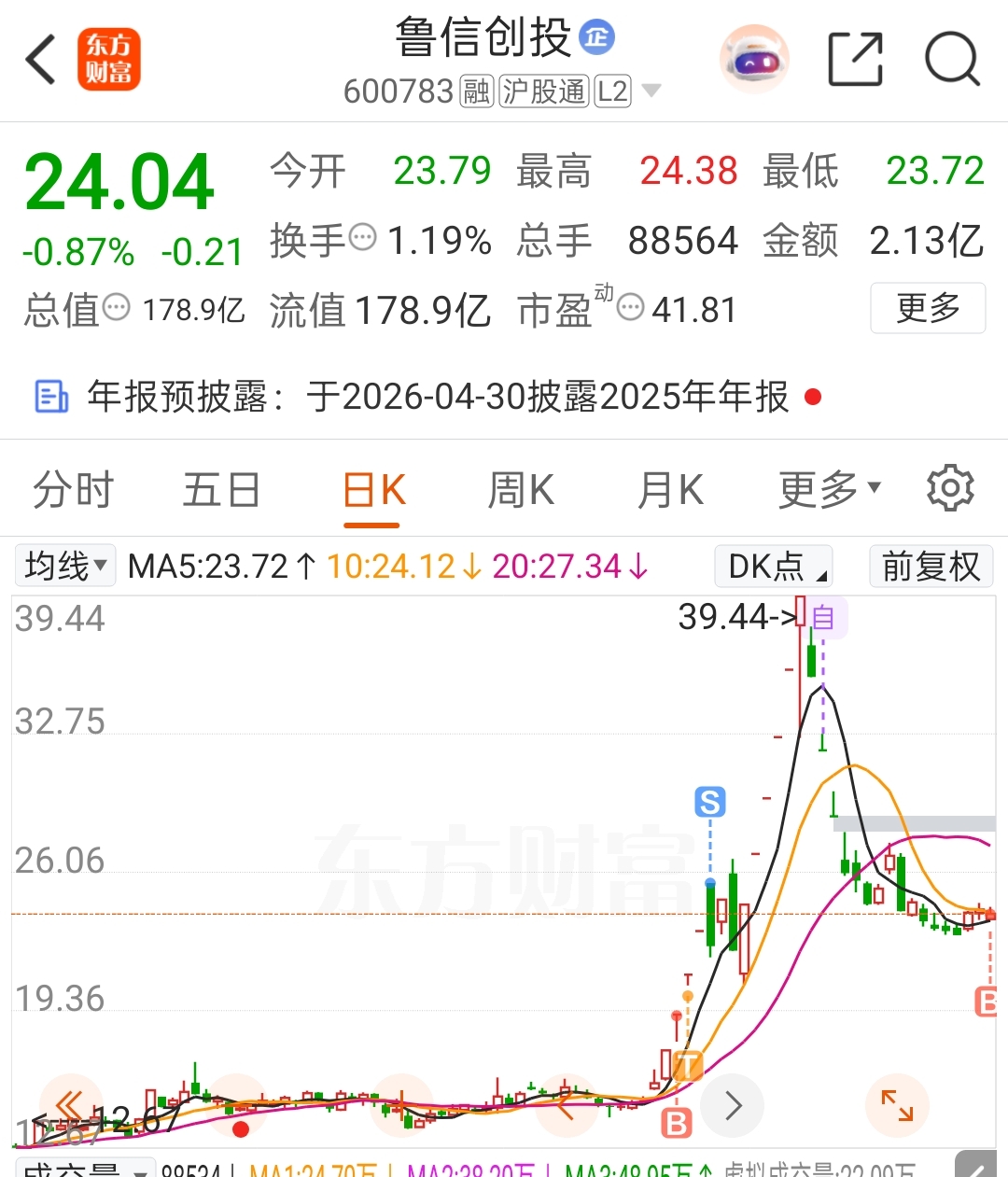 $鲁信创投(SH600783)$ 时隔一个月我来抄底了,这波小震荡杀伤力很强的,很多人顶不住压力割了,这票预期是蓝箭过会,等消息还会冲一波