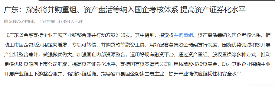 广东:探索将并购重组、资产盘活等纳入国企考核体系 提高资产证券化水平