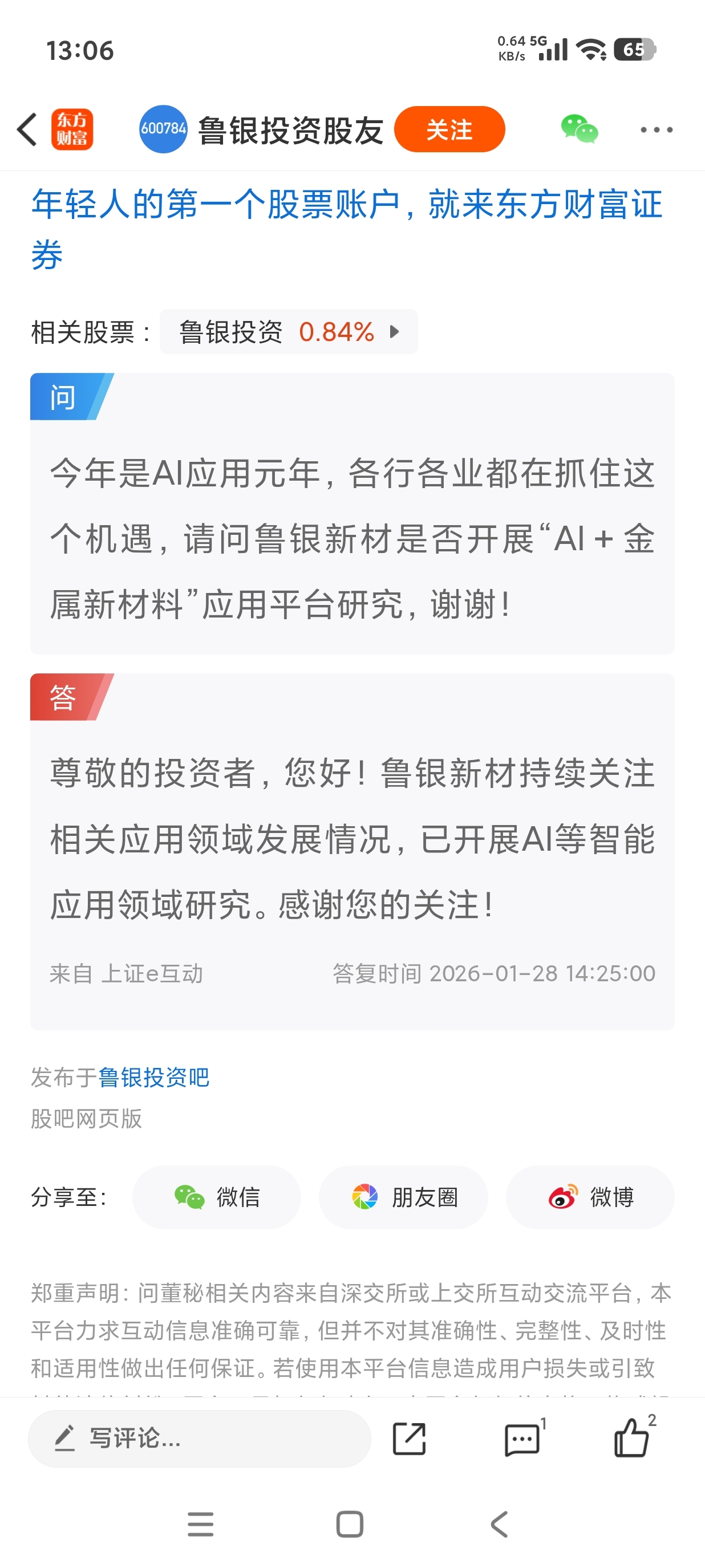 温馨提示: 1.根据《证券法》规定,禁止编造、传播虚假信息或者误导性信息,扰乱证券市场;2.用户在本社区发表的所有资料、言论等仅代表个人观点,与本网站立场无关,不对您构成任何投资建议。用户应基于自己的独立判断,自行决定证券投资并承担相应风险。《东方财富社区管理规定》