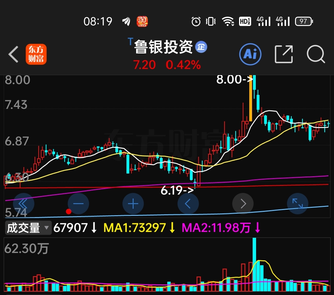 $鲁银投资(SH600784)$ 春节前赶紧向下挖坑,磨叽是没有办法让均线金叉的。这么小的成交量也无法承接上面的套牢盘筹码,时间磨叽跨度也不够呀。大散配合一下让大咕咚在 7 元以下好增持。你好我好大家好,不见金叉不入场。
