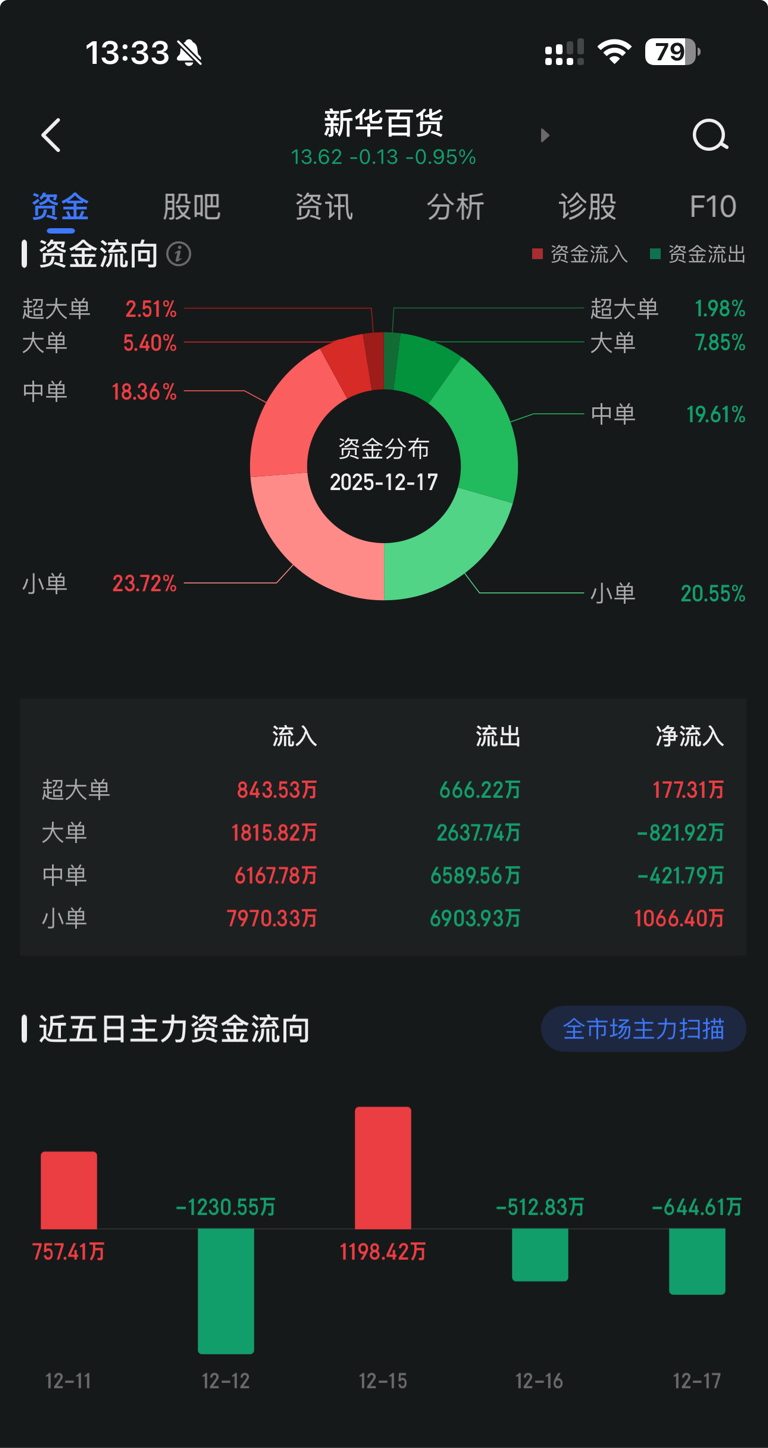 $新华百货(SH600785)$ 这种流入流出至少说明大资金是有分歧的,明后天感觉很危险