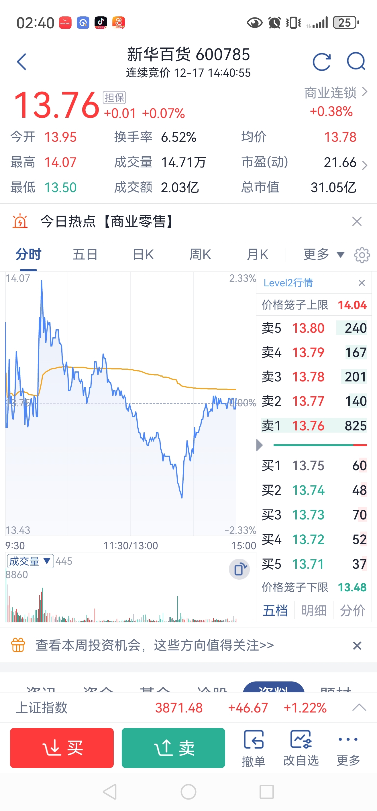 $新华百货(SH600785)$ 就这么怕它涨吗?