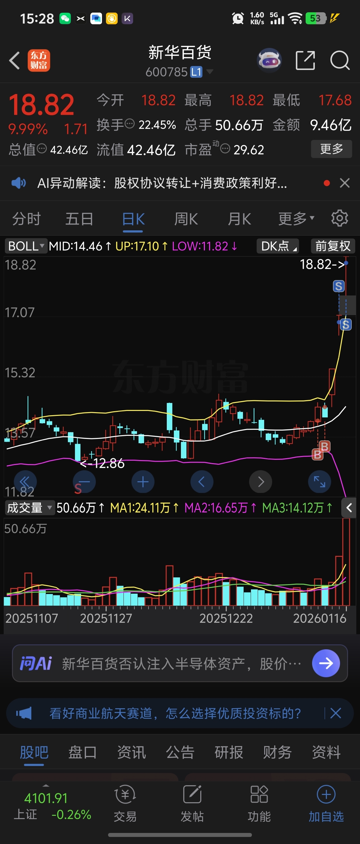 $新华百货(SH600785)$ 跑了,最近高标比较危险,落袋为安。