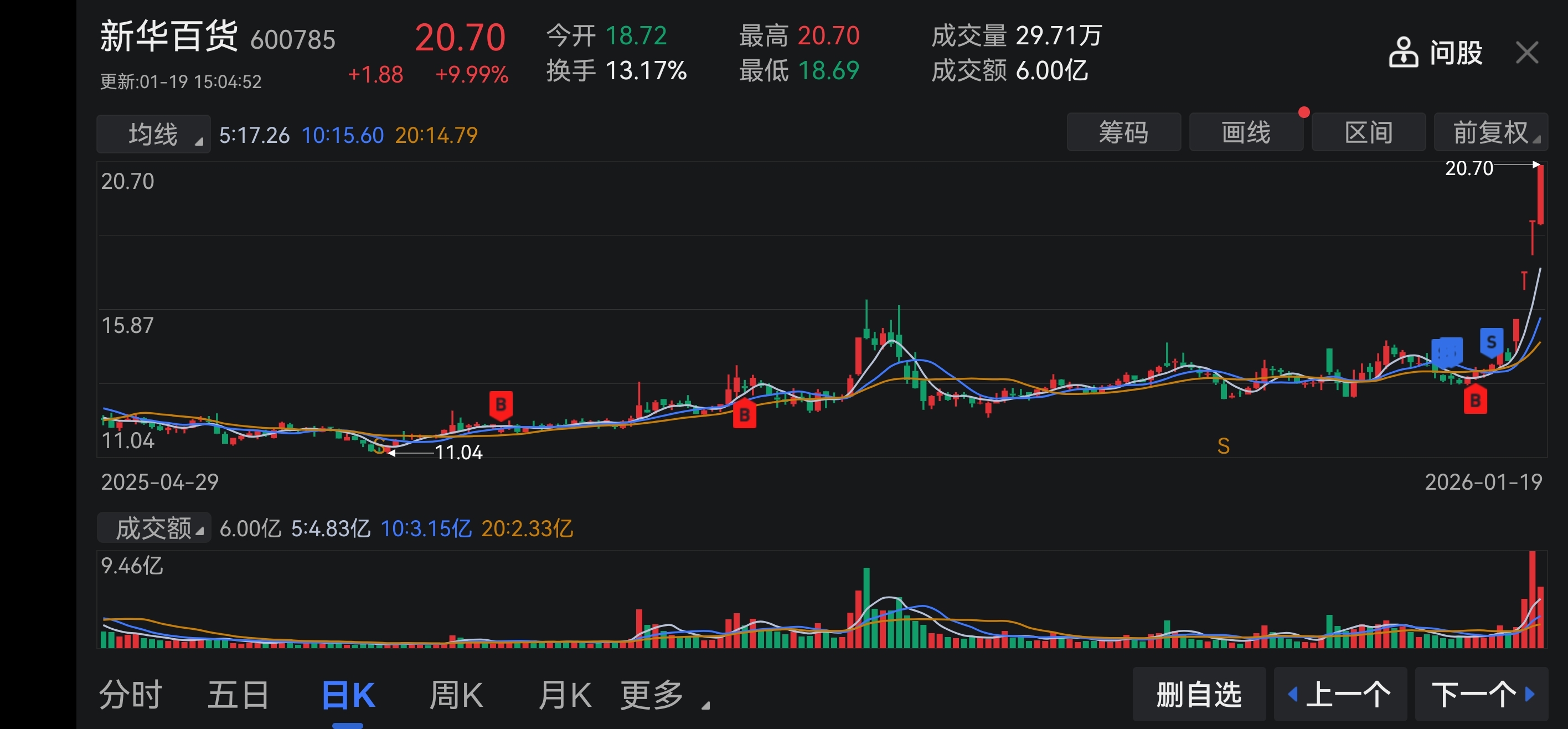 $新华百货(SH600785)$ 我能说啥,7月中旬布局了40万,这几天想着小特要打伊朗,买了点石油避险,想着过两天再回来,结果回不去了