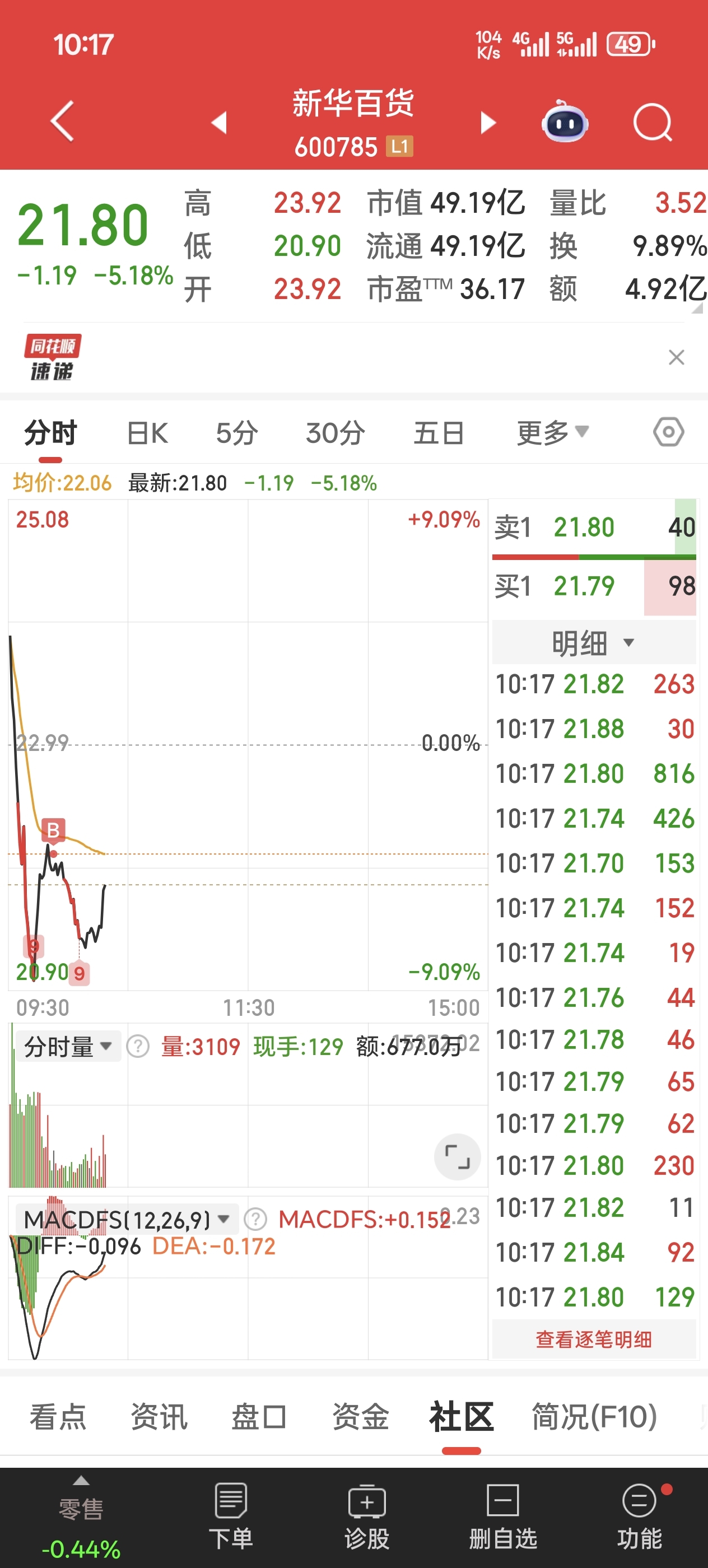 $新华百货(SH600785)$ 老毒物买入就跌,不跟你们开玩笑,想涨起来?不可能的!