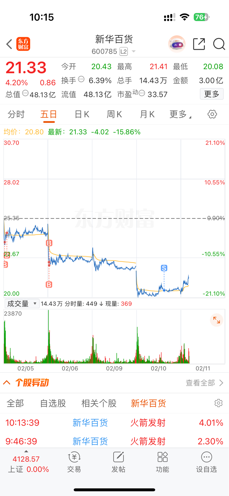 $新华百货(SH600785)$ 大家躺好,因为我卖了