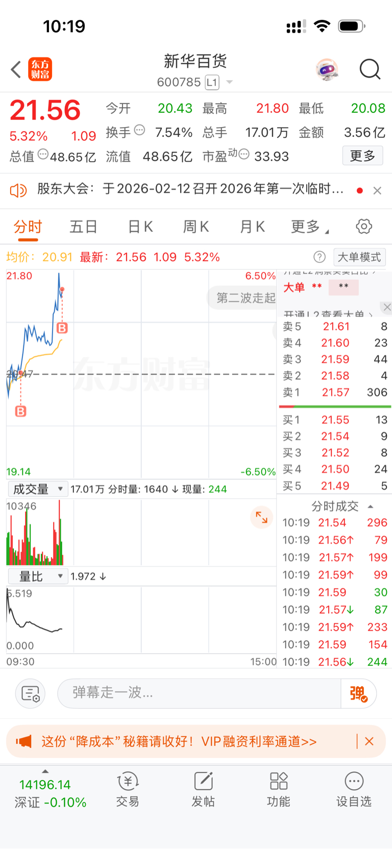$新华百货(SH600785)$ 加仓了