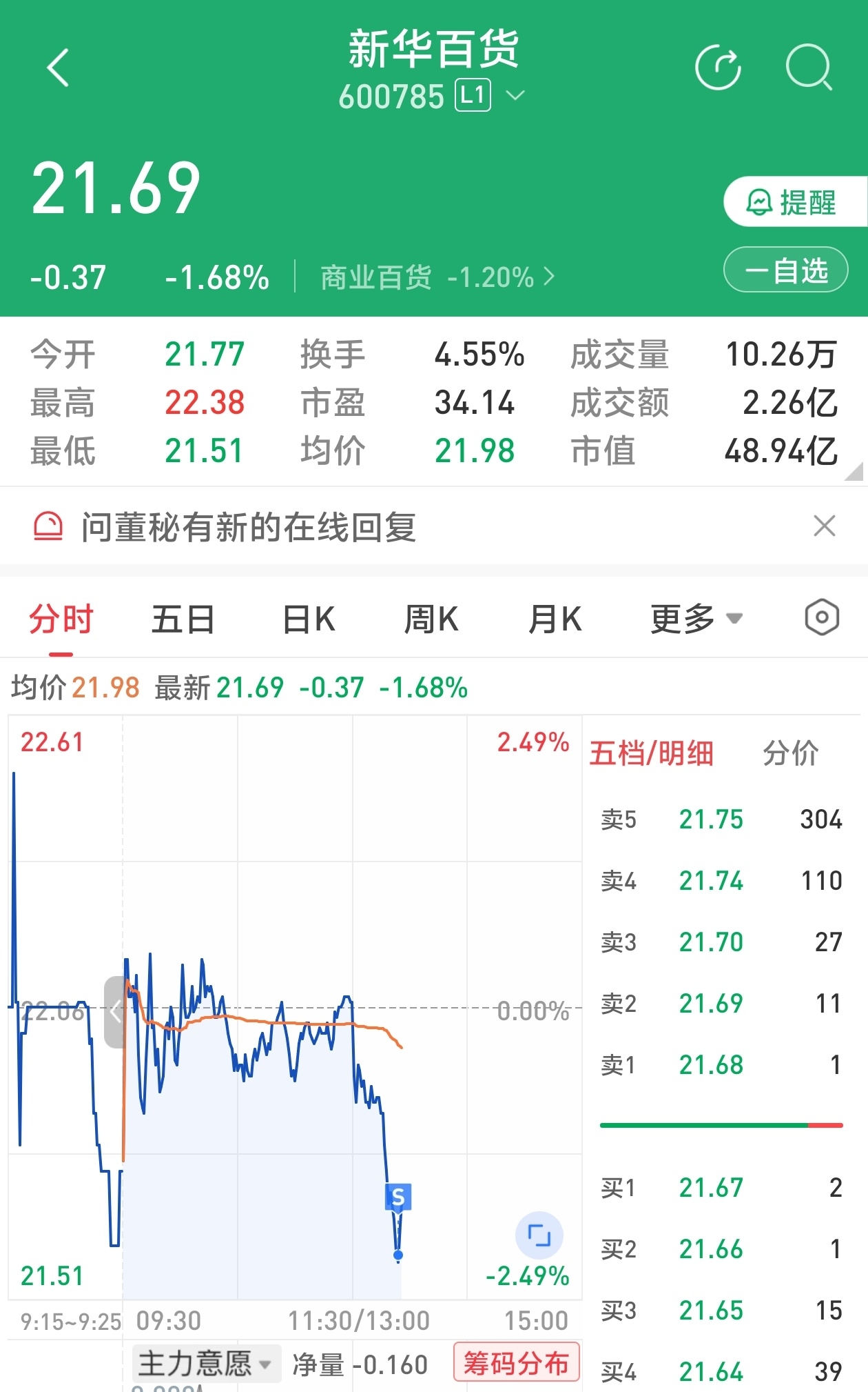 $新华百货(SH600785)$ 成功卖在最低点,