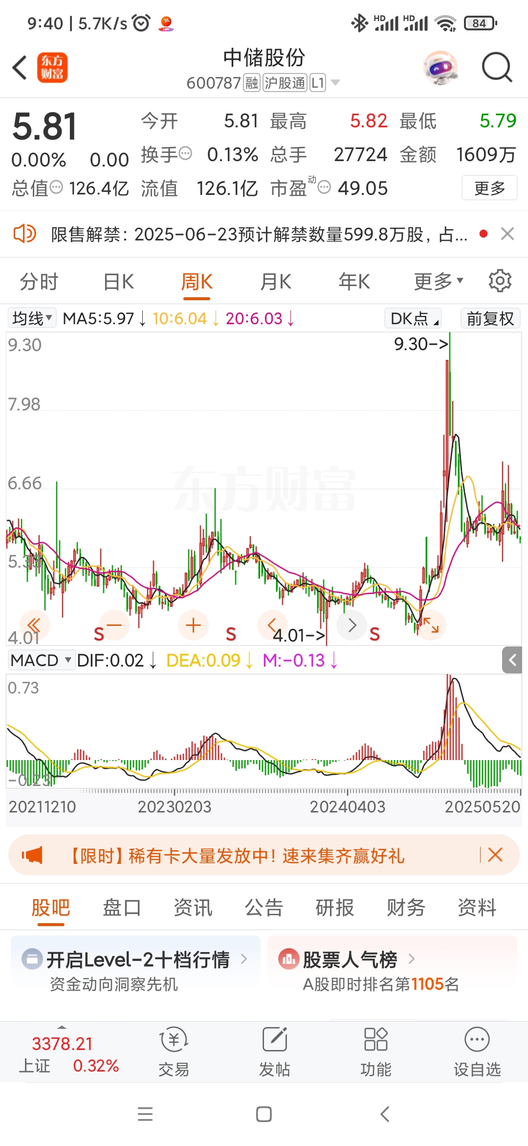 $中储股份(SH600787)$ 下跌趋势
