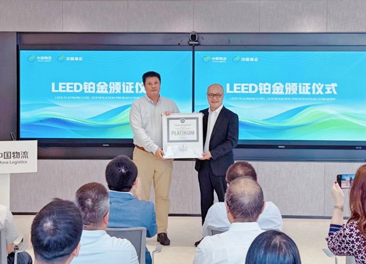 中储上海宝山吴淞物流园(简称“中储上海吴淞园区”)再度获得LEED v4.1 O+M铂金级认证。中储股份党委副书记、总经理王海滨日前在颁证仪式上表示,此次认证既是公司可持续运营的突破,也体现出在大宗商品期货交割与资产管理领域数字低碳运营能力的全面提升。