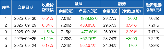 中储股份:融资净偿还1888.82万元,融资余额7.01亿元(09-30)
