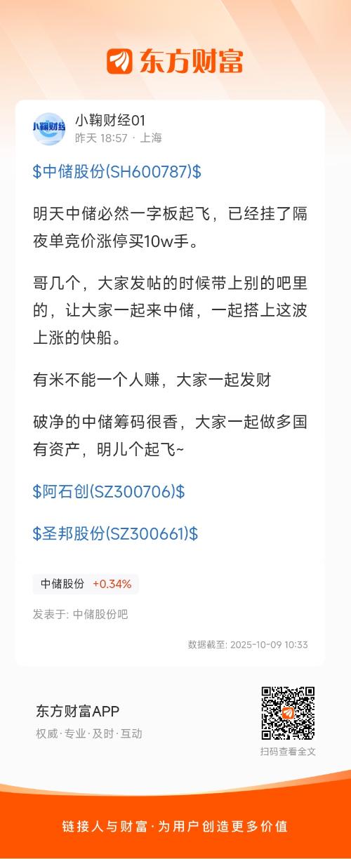 哥几个,大家发帖的时候带上别的吧里的,让大家一起来中储,一起搭上这波上涨的快船。