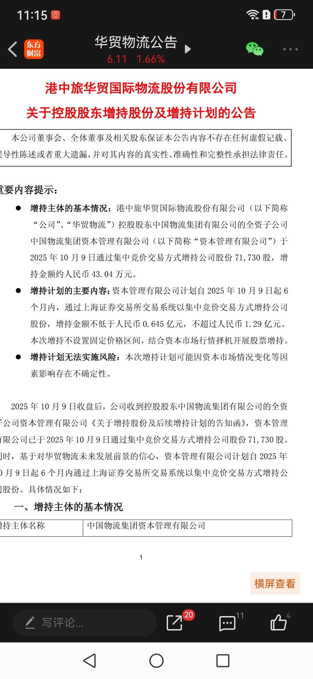 $中储股份(SH600787)$ 华贸都开始增持了,性价比更高的中储股份中国物流集团几时也增持啊?