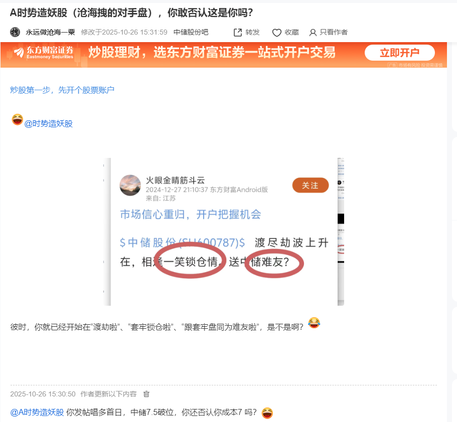 温馨提示: 1.根据《证券法》规定,禁止编造、传播虚假信息或者误导性信息,扰乱证券市场;2.用户在本社区发表的所有资料、言论等仅代表个人观点,与本网站立场无关,不对您构成任何投资建议。用户应基于自己的独立判断,自行决定证券投资并承担相应风险。《东方财富社区管理规定》
