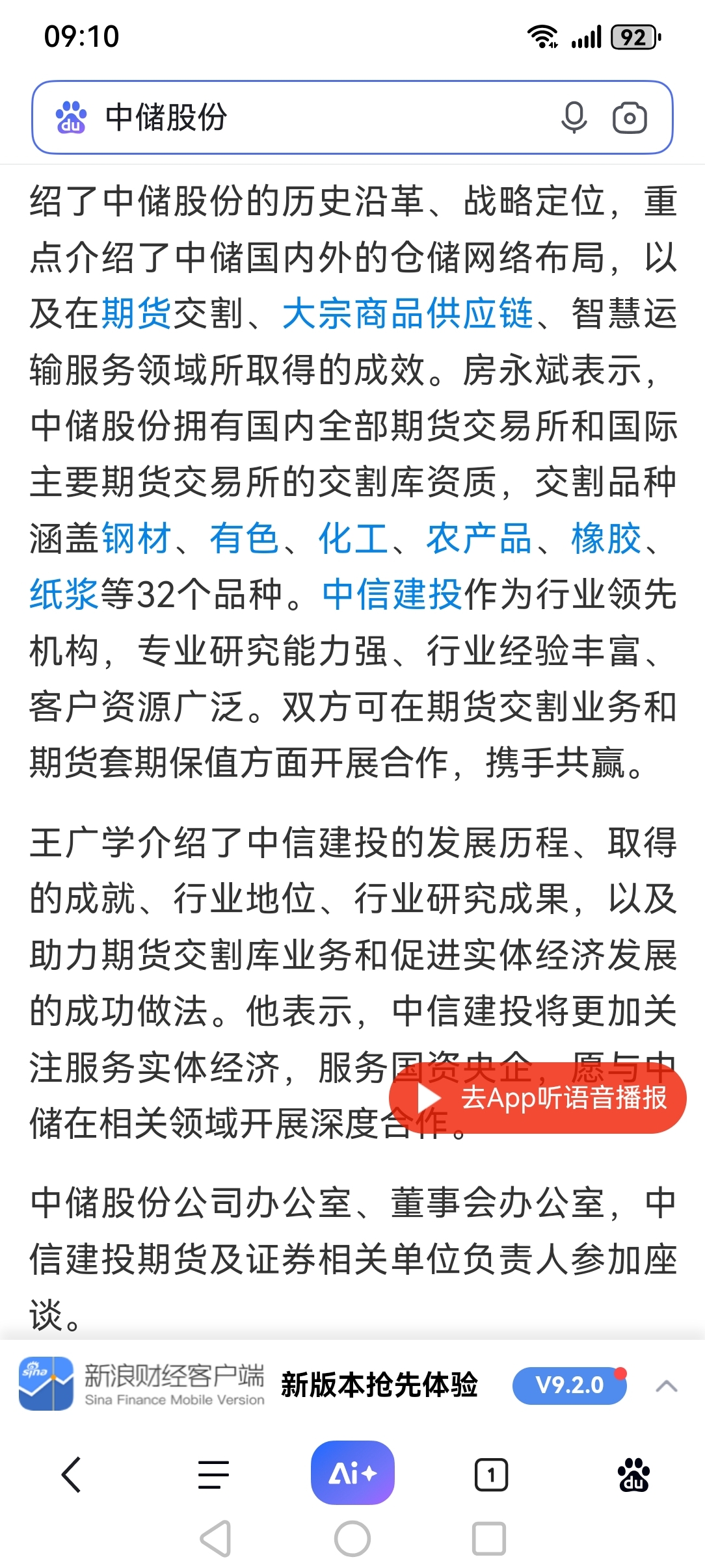 $中储股份(SH600787)$ 中储股份拥有国内全部期货交易所和国际主要期货交易所的交割库资质,交割品种涵盖钢材、有色、化工、农产品、橡胶、纸浆等32个品种。这破玩意资产多,手里现金多,还有武汉二十多亿拆迁款快要到账,有息负债才一点点,题材有中储智运上市预期等,市值才一百多亿,明显严重低估。股价就是不知道被哪个缺德货每天故意压着逼散户低位割肉卖出去。唉,只能耗着了,这么便宜的价格卖不下手啊。