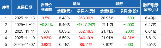 中储股份:融资净买入268.36万元,融资余额6.48亿元(11-13)