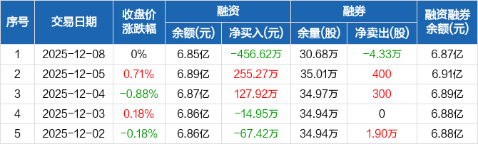 中储股份:融资净偿还456.62万元,融资余额6.85亿元(12-08)