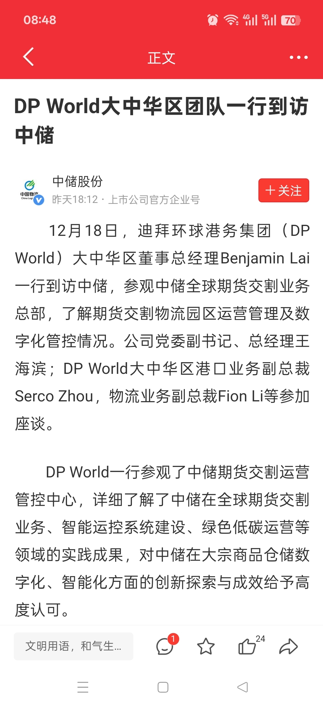 $中储股份(SH600787)$ 利好消息不断,这股为什么不涨。