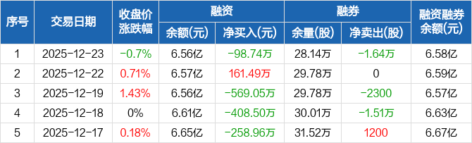 中储股份:融资净偿还98.74万元,融资余额6.56亿元(12-23)