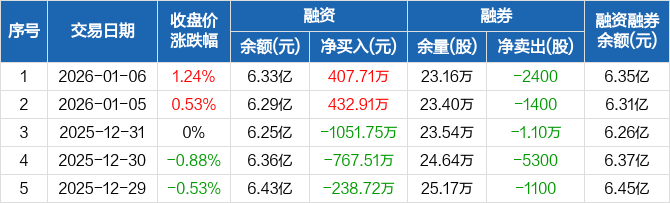 中储股份:融资净买入407.71万元,融资余额6.33亿元(01-06)