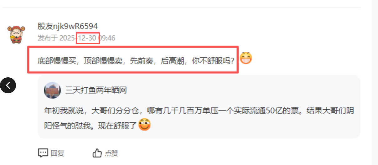 你12/30竟然开始慢慢买,慢慢卖了啊。你这是嘴盘,还是做过倒差价了啊。