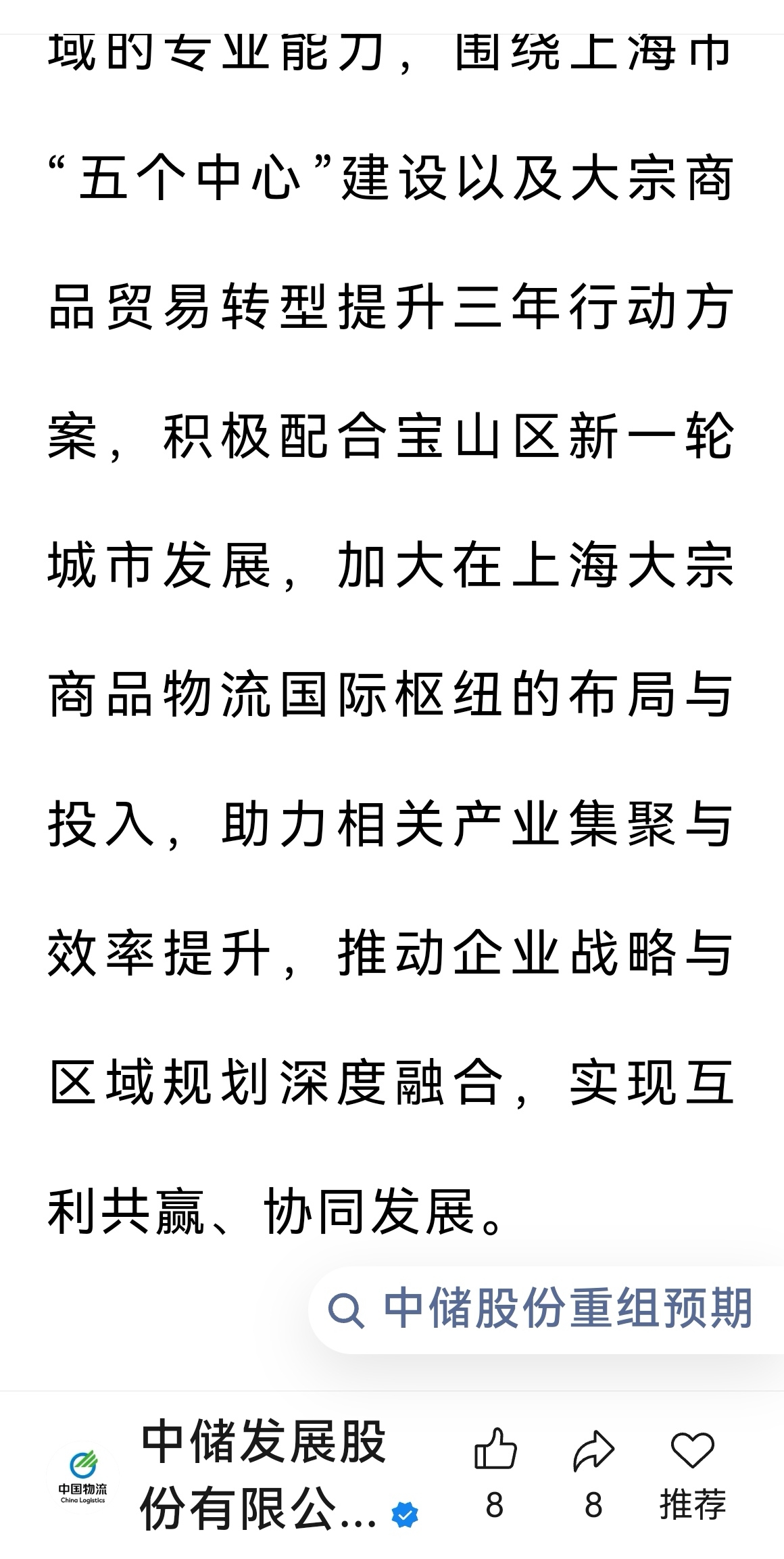 $中储股份(SH600787)$ #炒股日记# 中储以科技智运做支撑,用实力布局,用股价会证明在统一大市场的作用。(都是引用官方的发布)