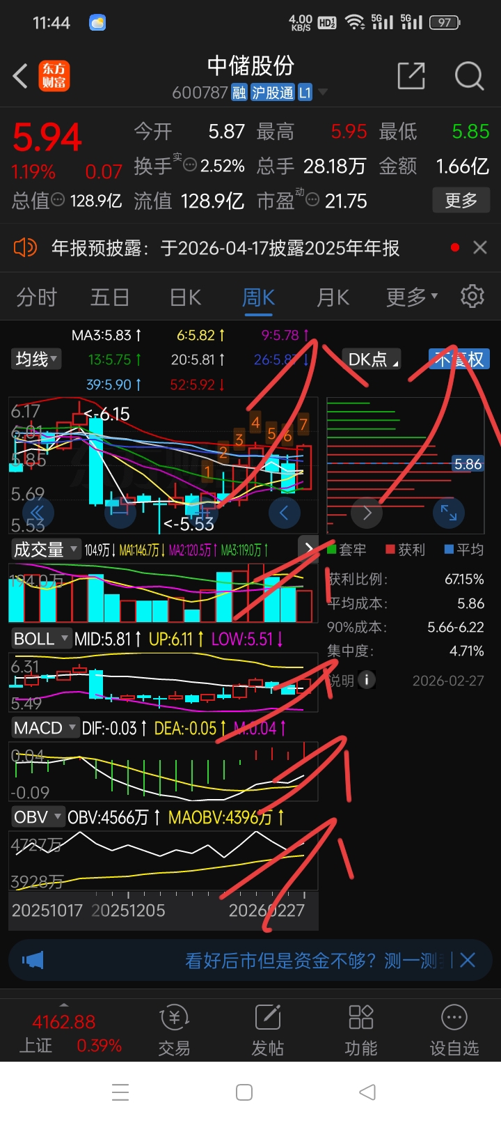 春节长假,砸盘打压没有到5.71元,最低5.72元,今年最高,瞎猜一下,……?!