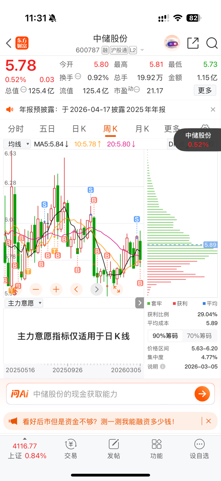 $中储股份(SH600787)$ 好事多磨,可惜不够手续费的