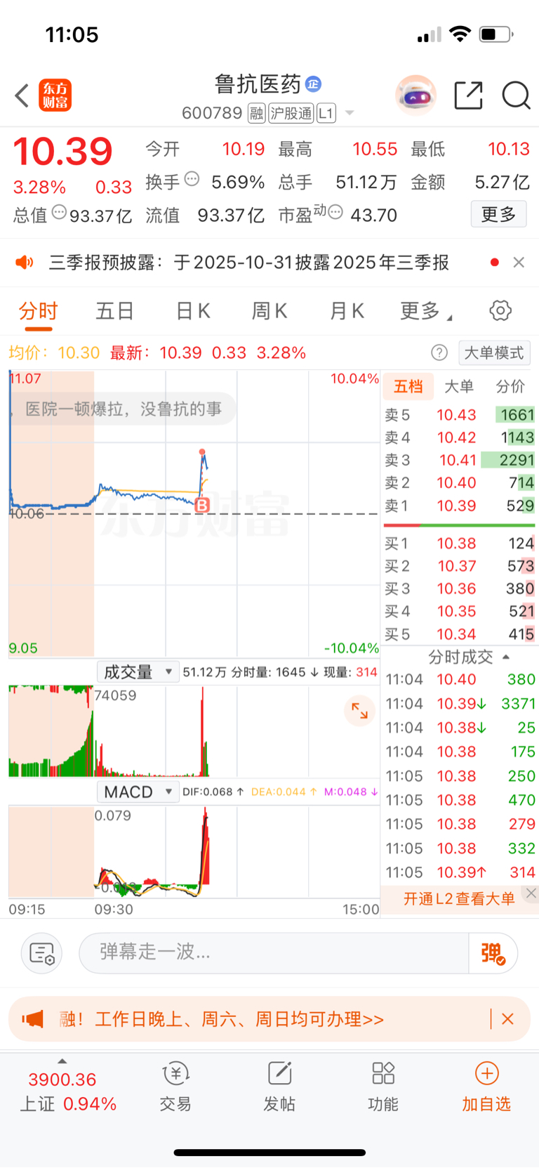 10.53追入你和特一药业二选一选了你别让我失望啊