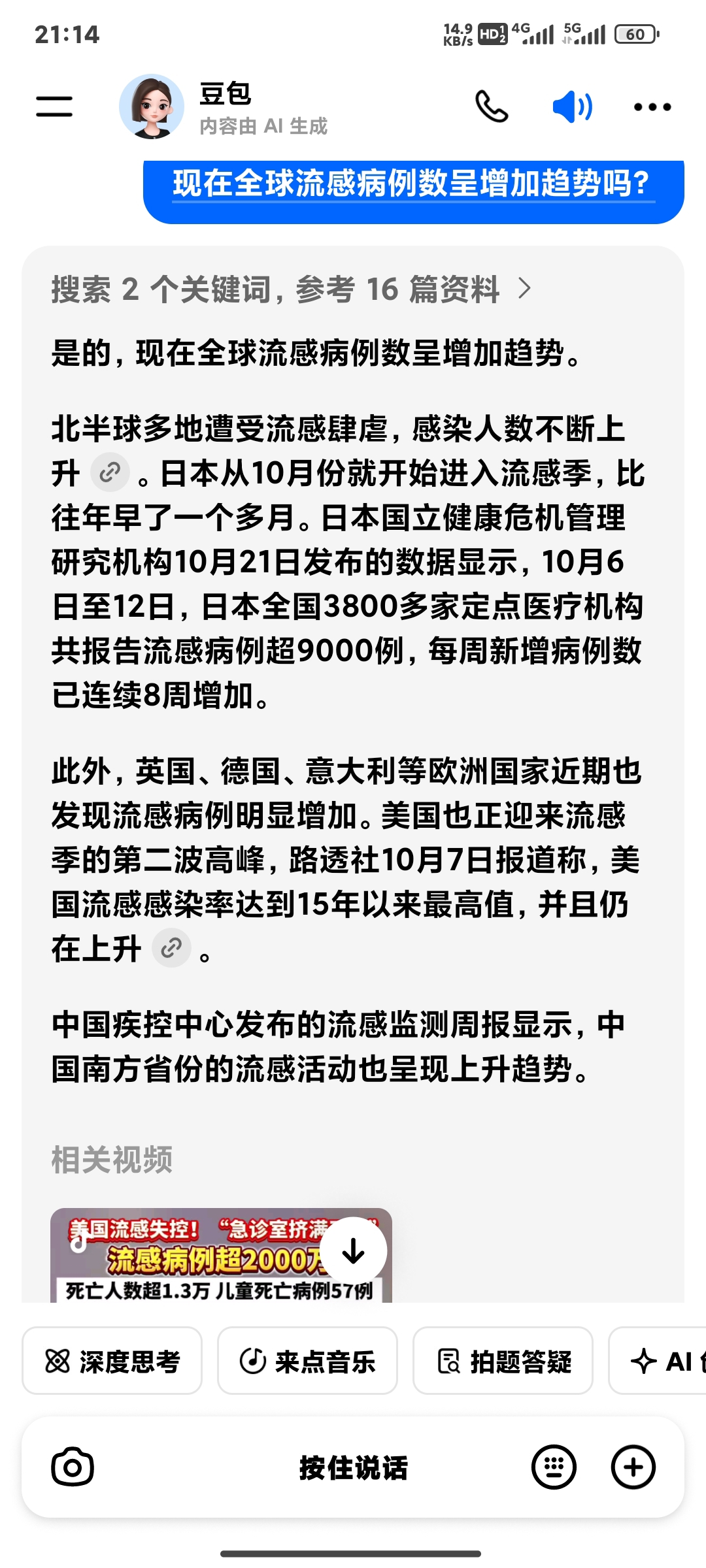 豆包的数据准不准呢?看着有点大流感危险啊,你怎么看?