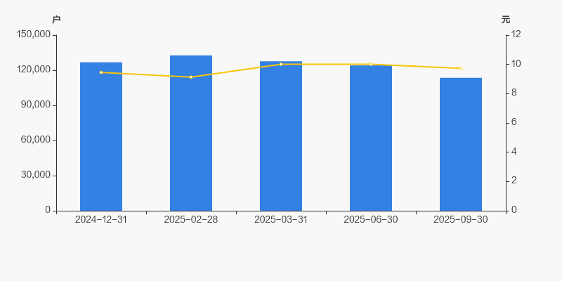 自2025年2月28日以来,公司股东户数连续3期下降,截至目前减幅为14.44%。2025年2月28日至2025年9月30日区间股价上涨6.58%。