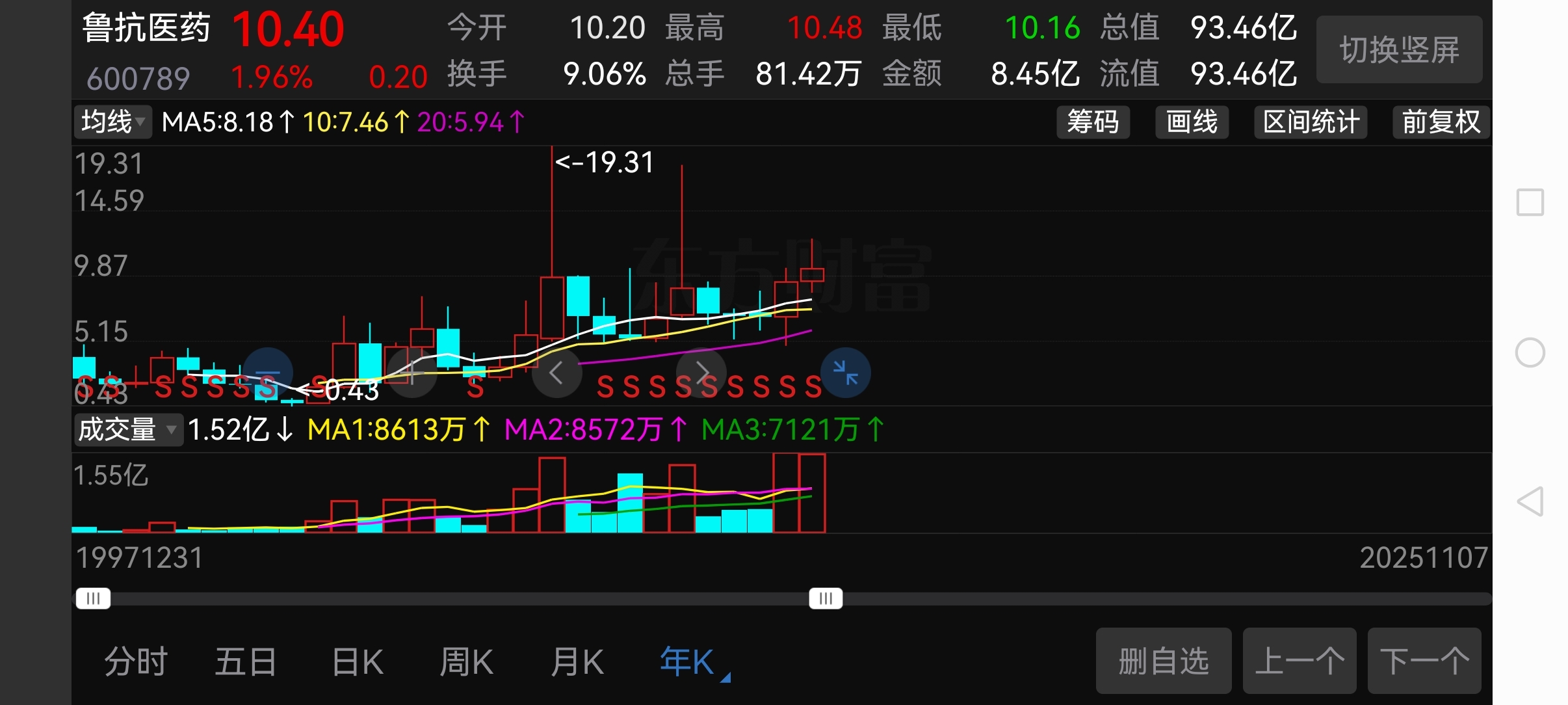 $鲁抗医药(SH600789)$ 25全年成交了创出历史天量是确定无疑了,天量放出,但天价呢?,自然不正常,天量,配合天价把套牢盘挂在山顶,不管是大盘指数,还是个股这肯定必须走出来的形态走势,这也可以从鲁抗15年,20年走势明显可以看出来,现在年天量己出,基本上也没年套牢盘,很不正常,所以明显现在缺个天价(必须是历史天价,才能和历史天量匹配),才能完美闭环!。