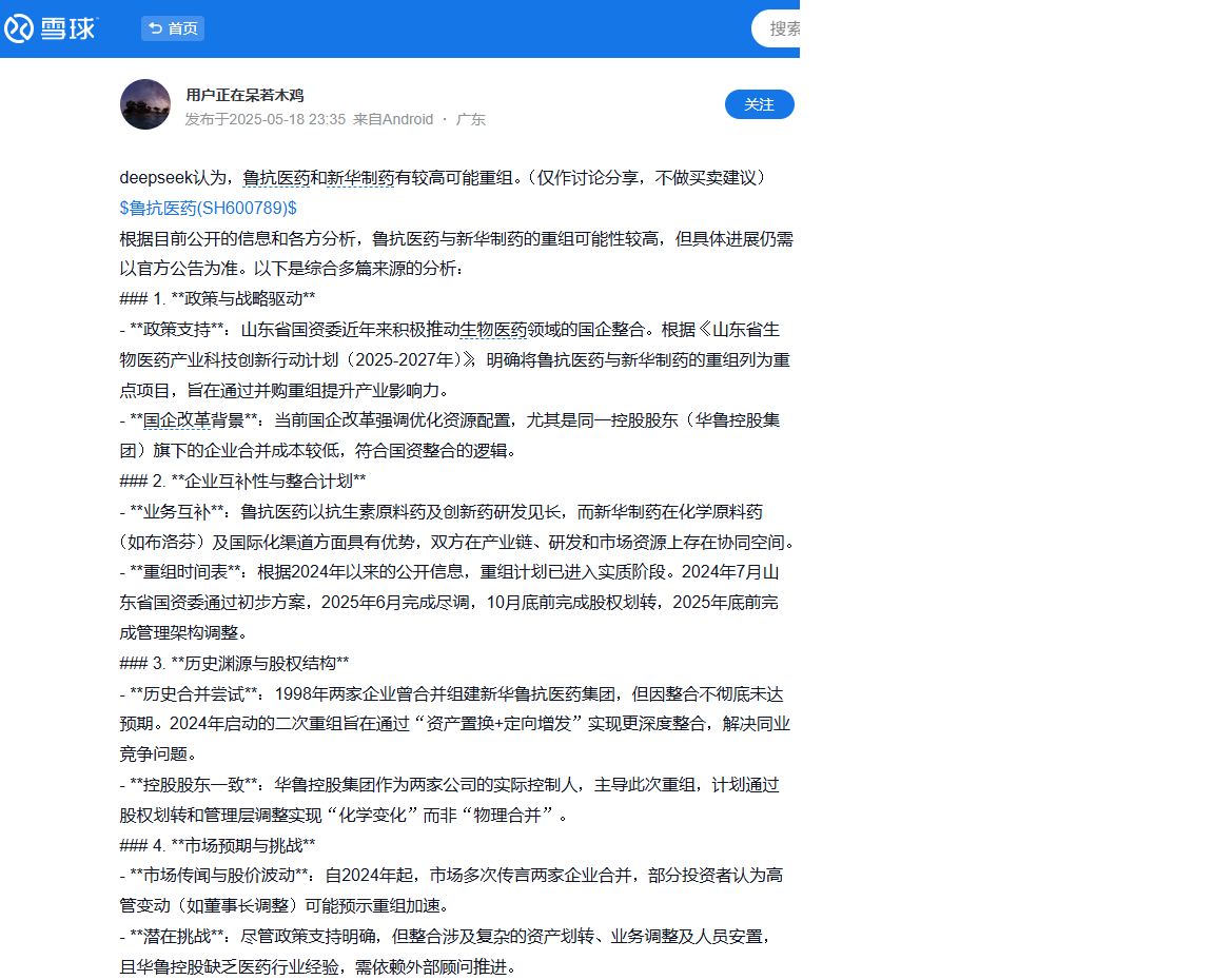 鲁抗医药与新华制药的合并重组是山东省的一大计划,请看: