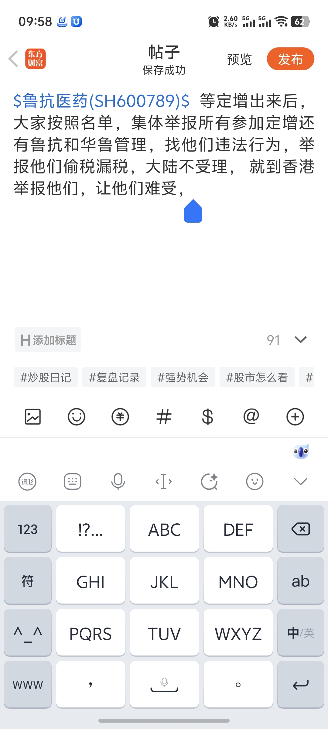 温馨提示: 1.根据《证券法》规定,禁止编造、传播虚假信息或者误导性信息,扰乱证券市场;2.用户在本社区发表的所有资料、言论等仅代表个人观点,与本网站立场无关,不对您构成任何投资建议。用户应基于自己的独立判断,自行决定证券投资并承担相应风险。《东方财富社区管理规定》
