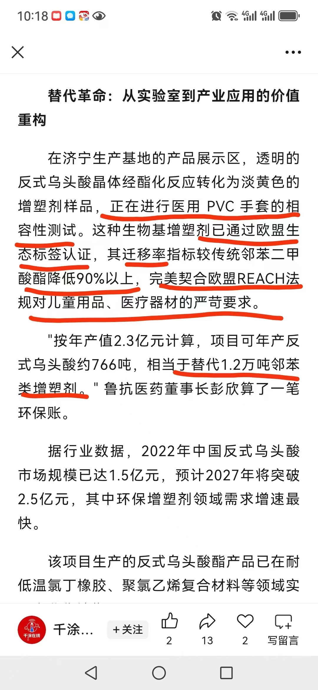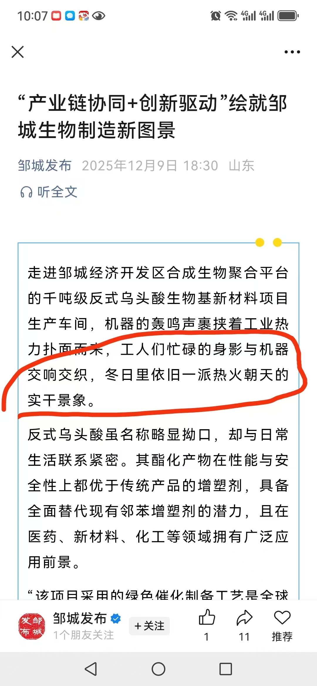 天天说反式乌头酸干的热火朝天,没见到利润呢,奇怪!