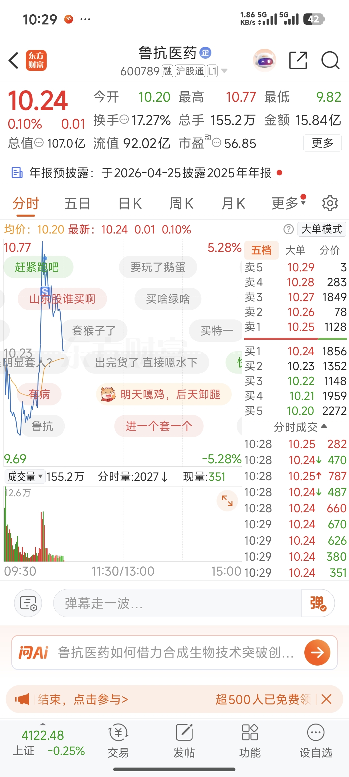 $鲁抗医药(SH600789)$