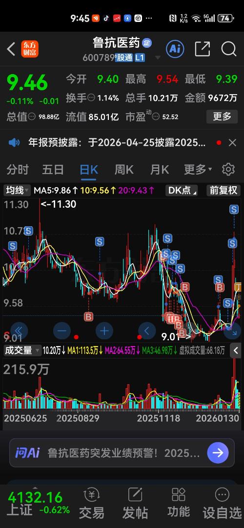 $鲁抗医药(SH600789)$  到9.3缺口我买点陪你们
